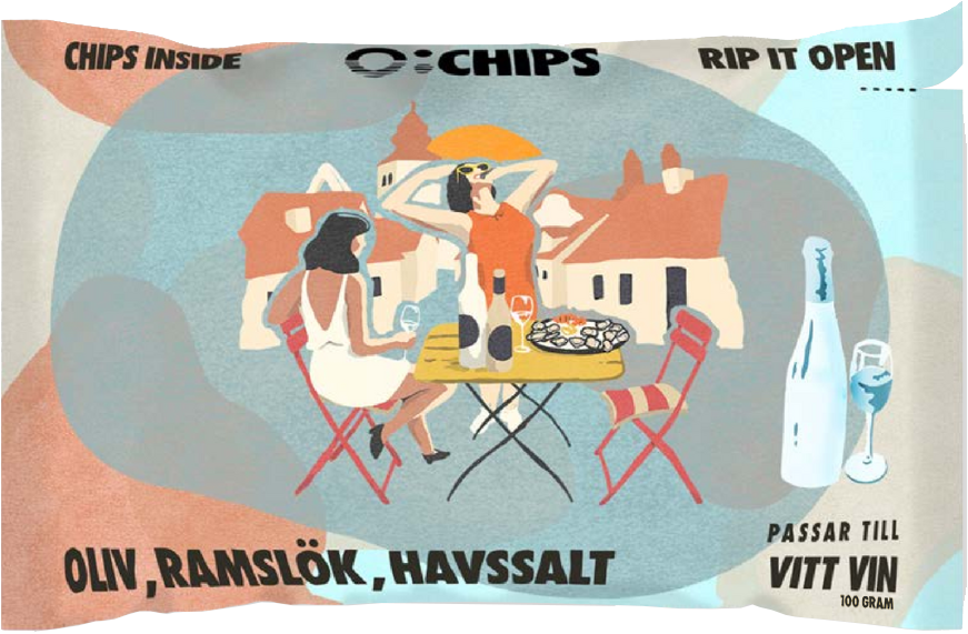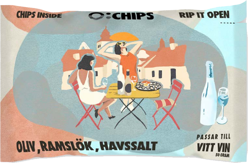 Ö-chips tillverkar hantverksmässiga chips av potatis från Gotland – svenska råvaror av högsta kvalitet, noggrant tillagade för att lyfta varje smakupplevelse. Påsarna är särskilt utformade för restaurang och bar för att bevara krispigheten och göra serveringen så enkel som möjligt men har också tagit sig hela vägen till soffbordet. Öppna, ställ fram och servera direkt ur påsen – snyggt, smidigt och utan disk. Varje smak är också framtagen för att passa till en viss typ av dryck såsom pilsner, IPA, rött-, vitt-, och rosévin. Idén till Ö-chips föddes när Simon Kanellos och Mikael Lundin, båda med rötter i krogbranschen, insåg att importerade snacks inte gjorde drycken rättvisa. Tillsammans med sommelierer och ölmästare utvecklade de ett sortiment av smaksatta chips framtagna för att harmoniera med olika typer av dryck. Resultatet är Ö-chips – ett svenskt snacks med genuin smak och känsla av kvalitet, gjort på gotländsk potatis och förpackat i en unik, funktionell påse.