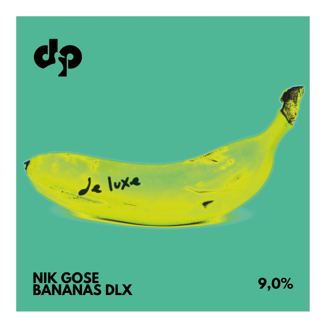 Deluxevarianten av Nik Gose Bananas, en krämig och friskt syrlig fruktbomb till gose, smaksatt med massiva mängder banan och en kick vanilj på slutet. Tankarna förs till vad som bäst kan beskrivas som en flytande banana split.