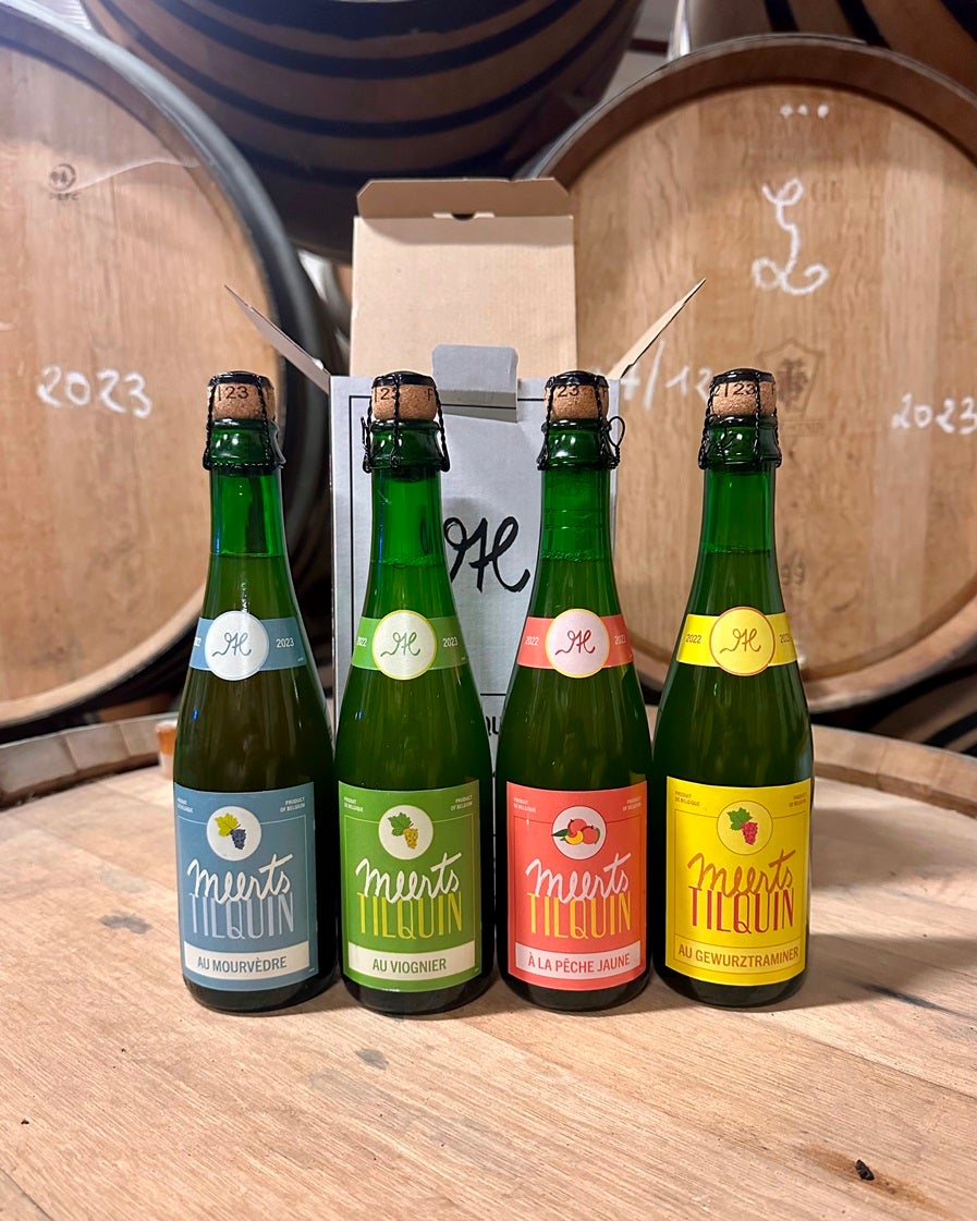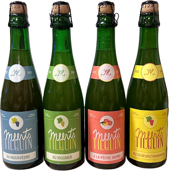 Fyra olika fruktiga varianter av Tilquins lätta och syrliga Meerts, framställda på drav från lambic och smaksatta med olika frukter eller druvskal: